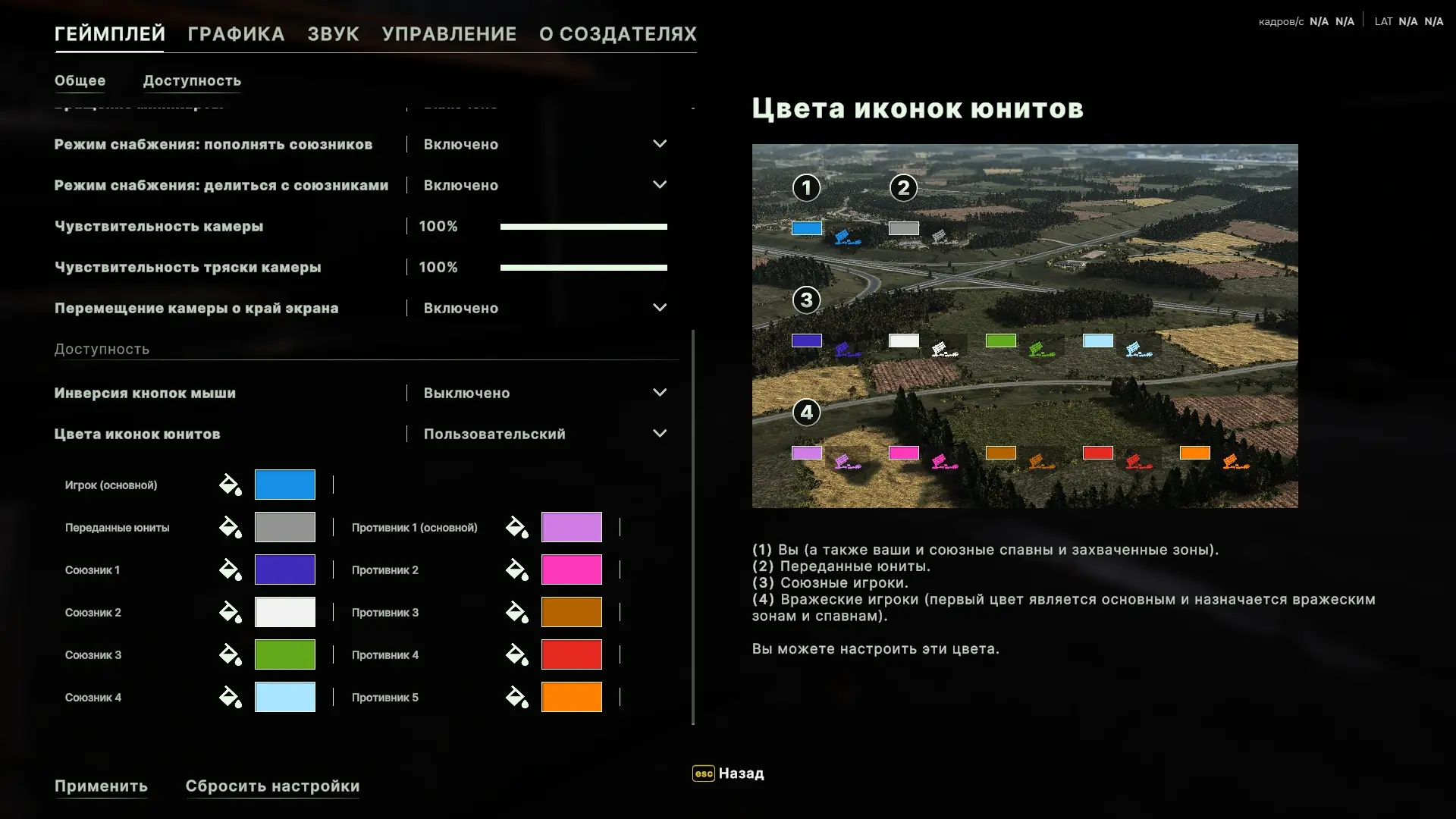Зайдите в настройки игры (значок шестерёнки в правом верхнем углу экрана), перейдите в раздел Геймплей и пролистайте в самый низ. Установите значение пункта «Цвета иконок юнитов» как «Пользовательский».
