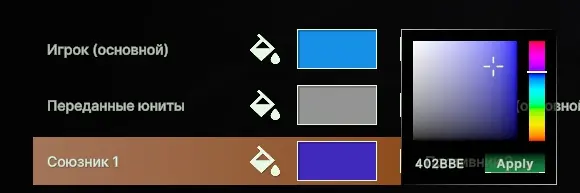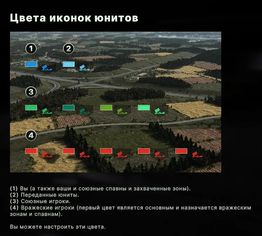 Выбор цветов для 10 человек, а также для переданных юнитов (юниты вышедших игроков, переданные под управление союзников) – не такая лёгкая задача, как кажется на первый взгляд. Здесь важно сделать так, чтобы игроки каждой команды были разных цветов, но при этом было понятно, где союзники, а где – враги.
