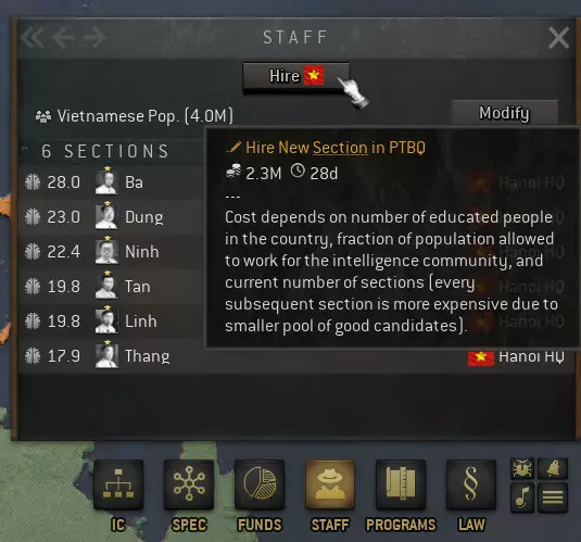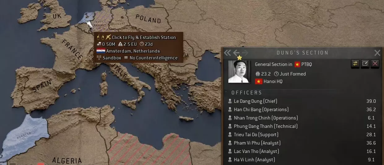 Мы играем за военную разведку вьетнамской народной армии. Годы французских репрессий, последующая жестокая японская оккупация и кратковременное сотрудничество с американским УСС превратили нашу службу в довольно многочисленную и обученную силу, находящуюся на 28 месте по мировым рейтингам.