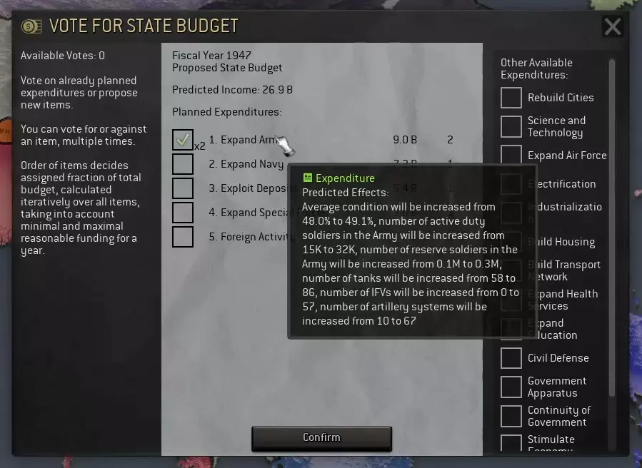 Вернёмся на родину и к приготовлениям к войне. Мы переведём чёрный бюджет на нужды Вьетминя. После провала в Тае и замедления прогресса в Европе, это будет лучшее решение по мере приближения 1947 года.