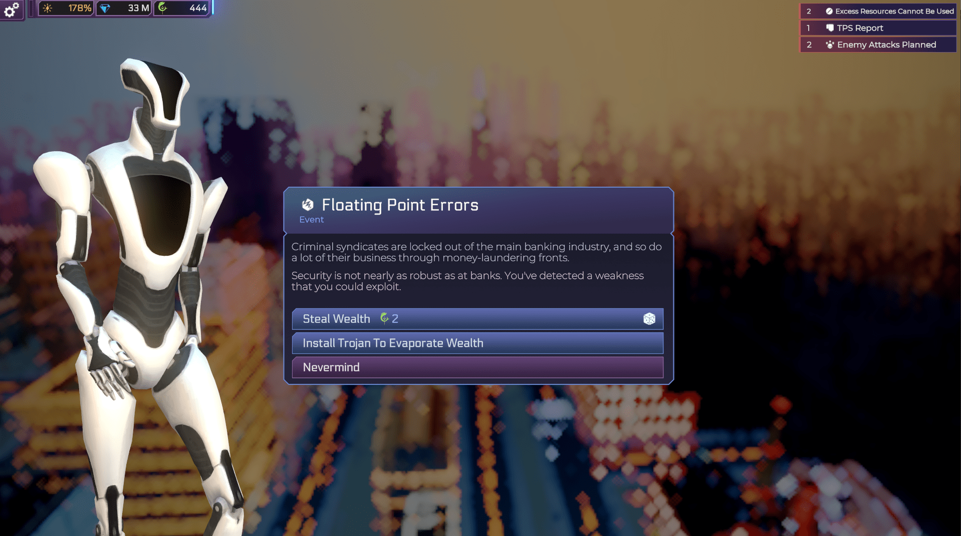 В Heart of the Machine игрок берёт на себя роль разумного ИИ в городе будущего, погрязшего в лжи и коррупции. В руках игрока возможность повлиять на судьбу города, будь то жёсткими действиями или манипуляциями.